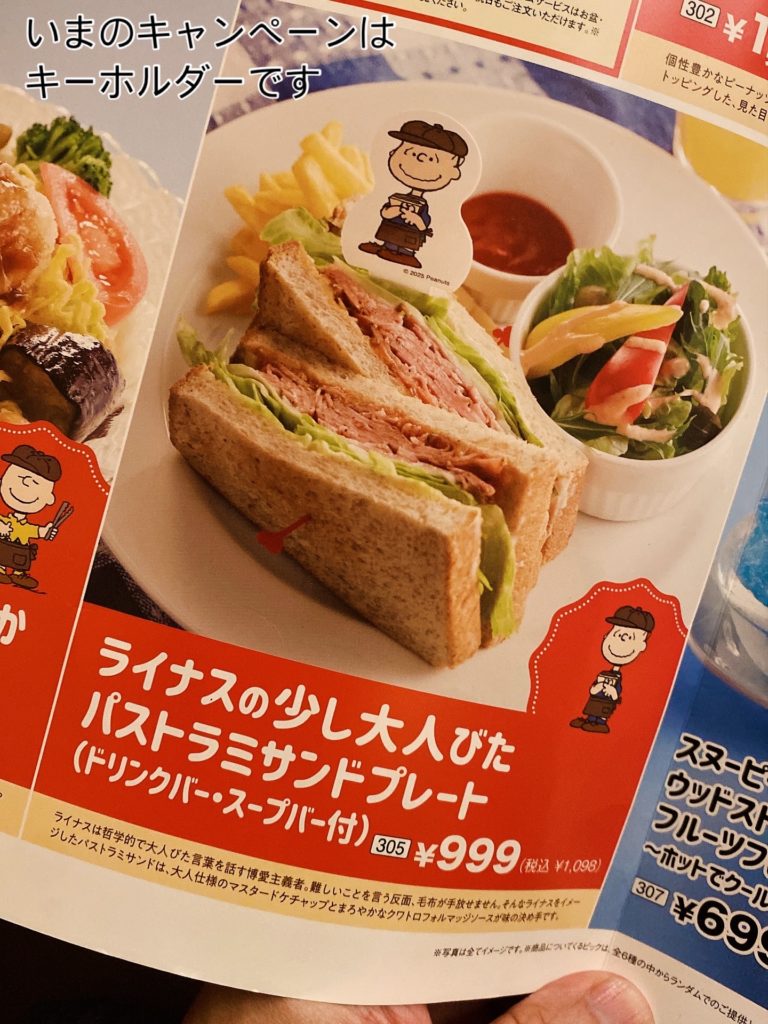 ジョイフルさんとピーナッツのコラボですが、わかりやすく言うと『スヌーピーコラボ』ですね。こういうコラボ商品は商品(食べ物)のほうも『しっかりと企画されてくる』ので、見た目の楽しみもありますが、味の方も毎回美味しいです。今回のメニューは、ドリンクバーとスープバーがついて税抜999円というお得さ。ミニサラダにポテトがあり、贅沢なサンドイッチは食べ応えありでありながら、ソースもかなり美味しい。オススメです。
