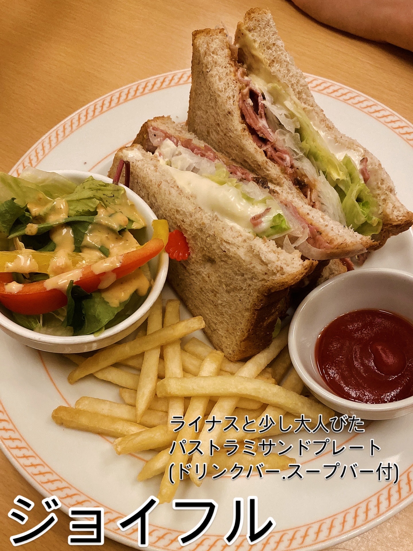 【ジョイフル】さんの『ライナスと少し大人びたパストラミサンドプレート』です。