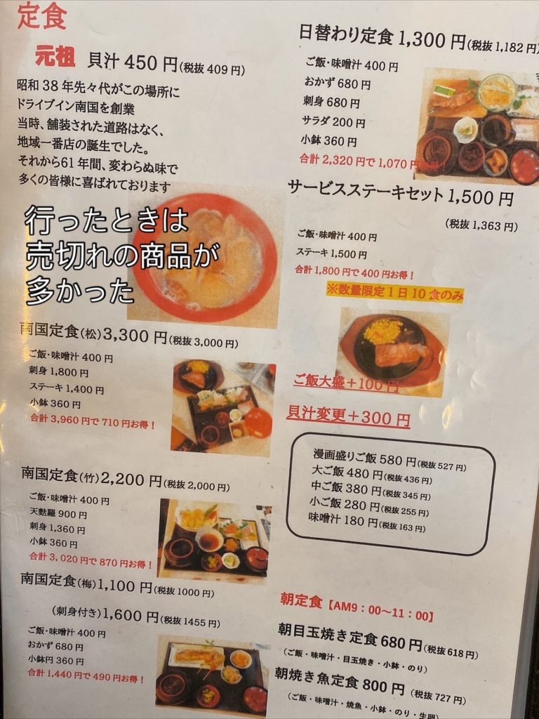 というわけで、今回はドライブイン南国さんです。