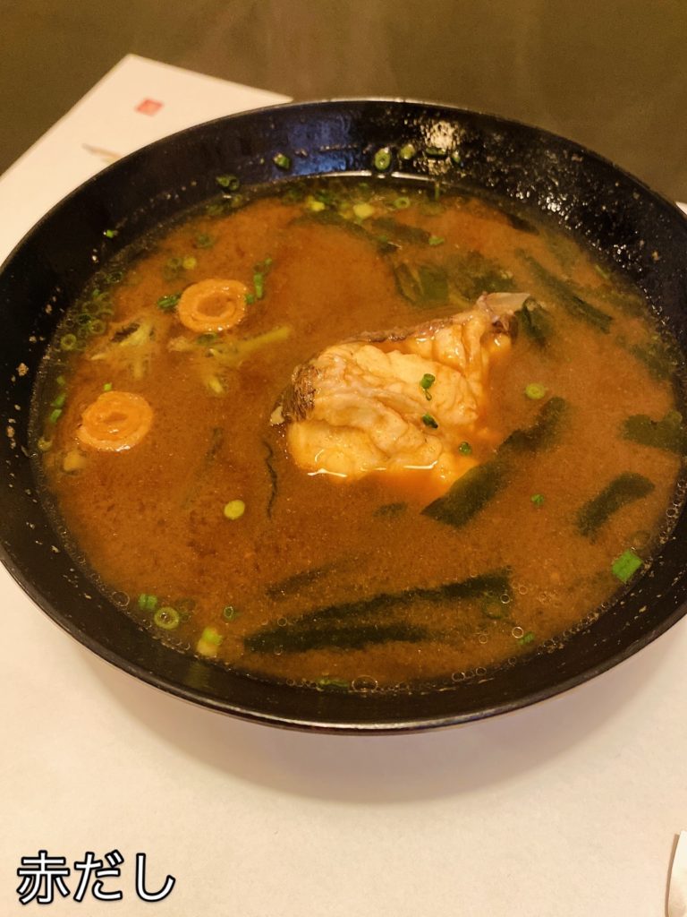 出汁のきいてる美味しい赤だし。身体に染み渡ります。
