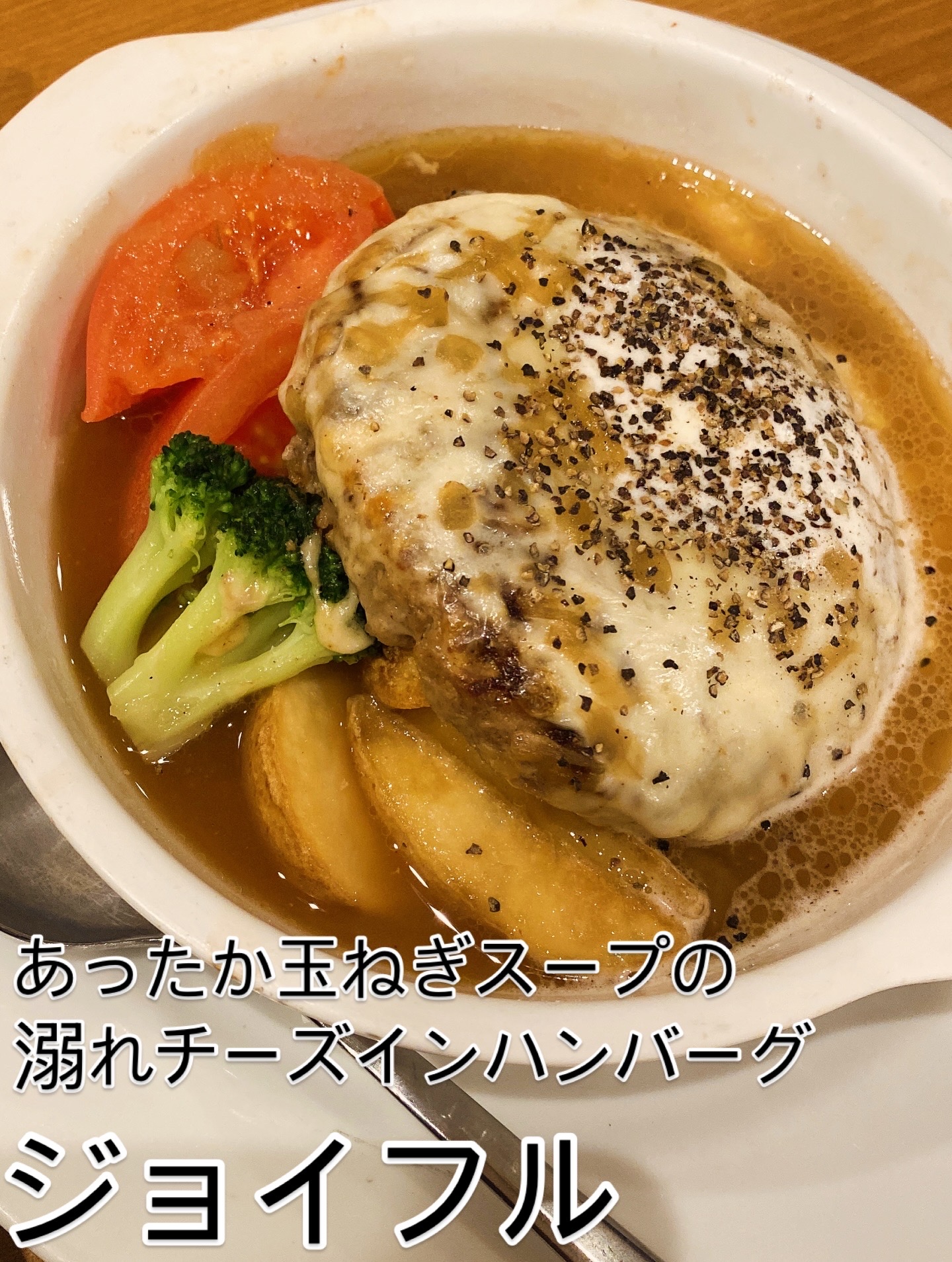 【ジョイフル】さんの『あったか玉ねぎスープの溺れチーズインハンバーグ』です。