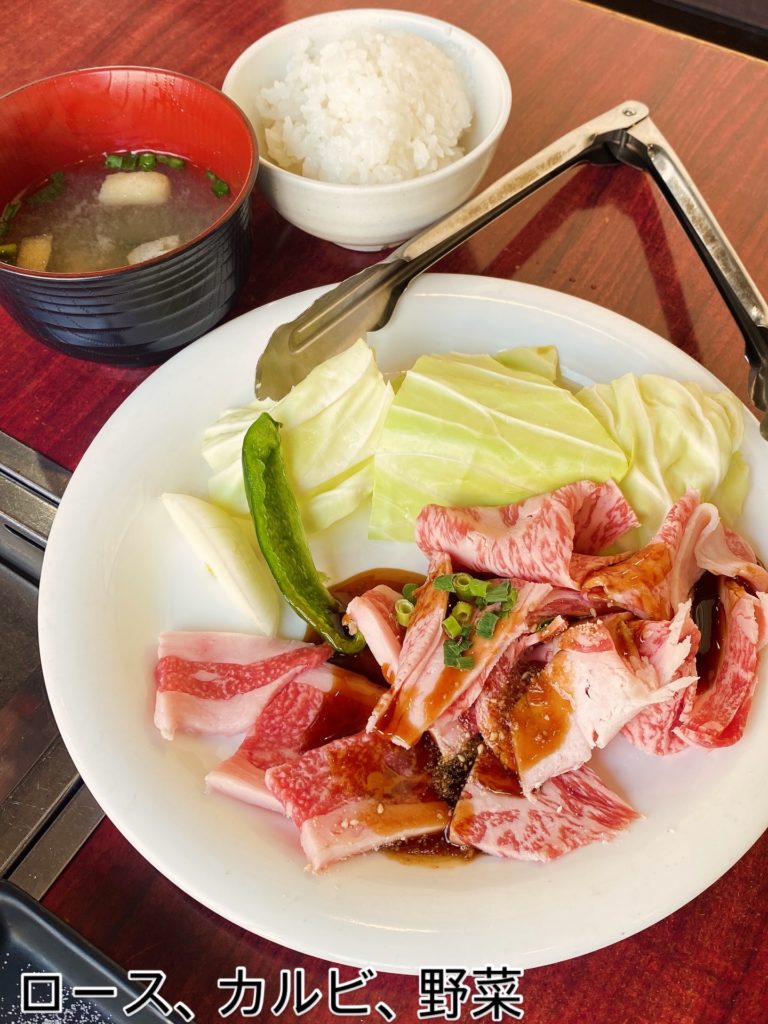 ロースにカルビ、野菜もついてます。豪華ですね。