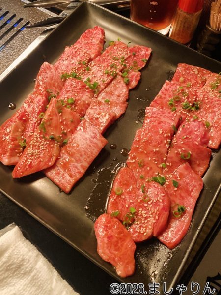 和牛カルビとロース。それぞれ2人前。むっちゃ美味しそうです。