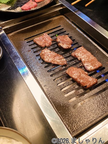 いい感じに焼けています。朝方の焼肉も悪くないです。美味しい。